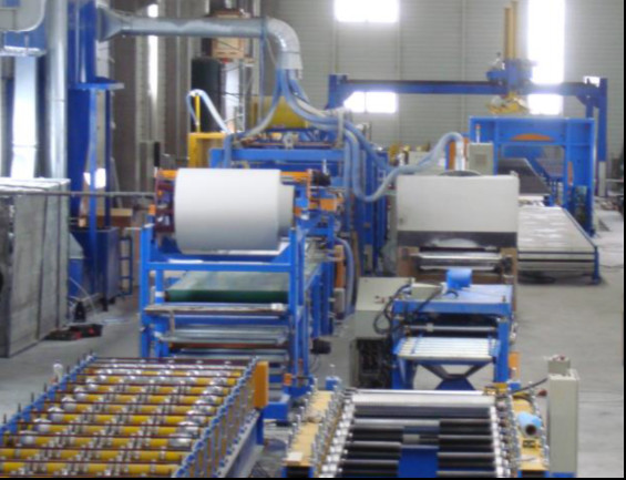 he Sandwich Panel Production Line is composed of four (5) main sections, such as, STEEL DECOILER,ROLL FORMING MACHINE,EPS AND ROCK WOOL LOADER AND EDGE MILLING MACHINE,SANDWICH PANEL LAMINATOR,BLADE AND SAW CUTTING MACHINE,ROLLING TABLE.